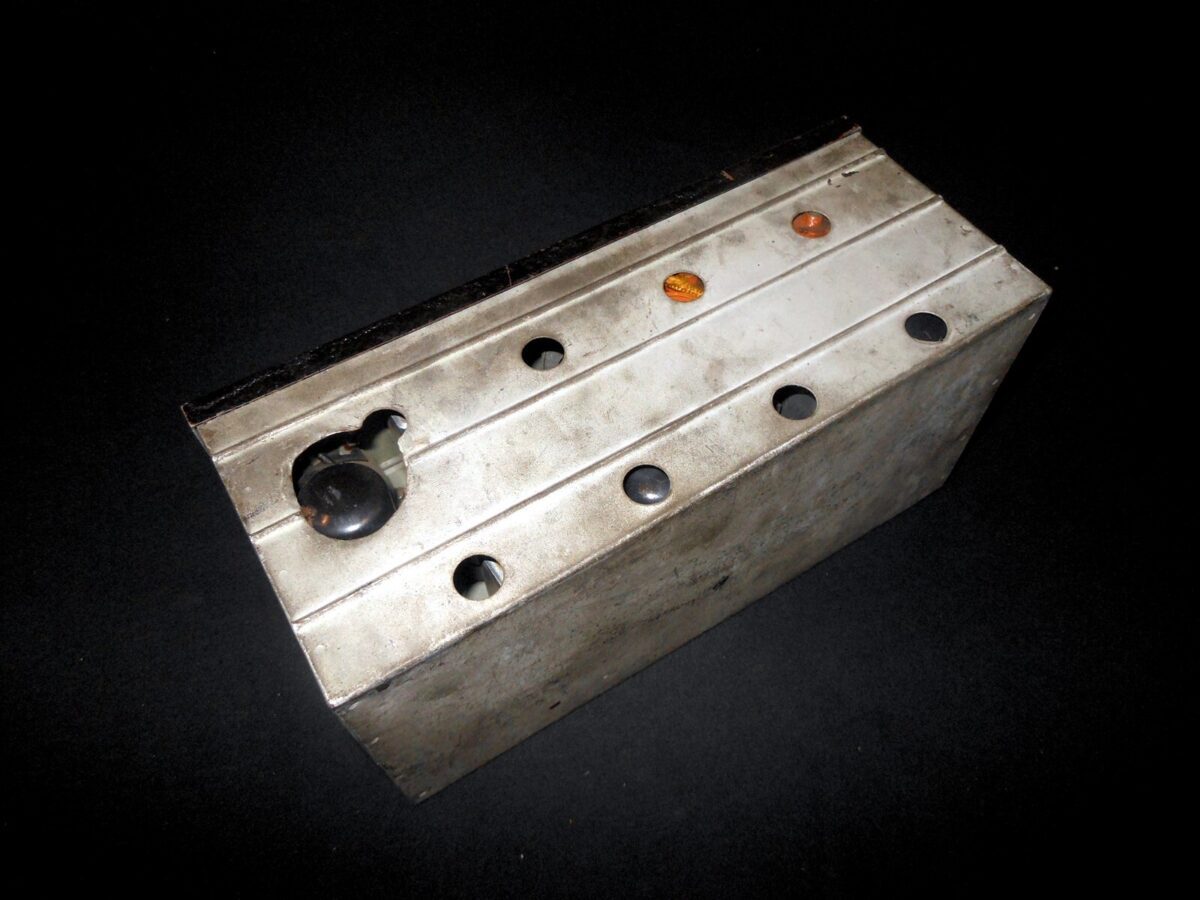 Made of aluminum and steel, this is a VERY RARE Radio Receiver! There are some marks and wear throughout due to the age, but nothing that detracts. Apart from the power plug, it appears to be complete both internally and externally. Though it is mechanically functional, I have not tested it electrically, so I am selling this as-is. I have shown its location in the last images. Would make a SUPERB addition to any British Spy Radio collection or display!